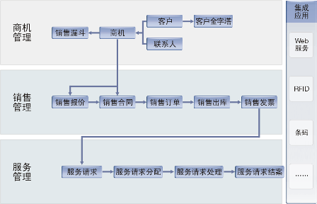 客戶關(guān)系管理系統(tǒng)主要面向企業(yè)銷售、服務(wù)人員,能夠幫助企業(yè)對客戶資源、商業(yè)機(jī)會、服務(wù)進(jìn)行管理;同時(shí)支持關(guān)系營銷與項(xiàng)目銷售過程管理等業(yè)務(wù)模式。該系統(tǒng)與K/3 ERP銷售系統(tǒng)集成運(yùn)行,為企業(yè)提供較為完整的企業(yè)銷售管理應(yīng)用解決方案。