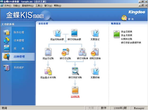 賬務處理是KIS迷你版的核心模塊,主要包括憑證處理、賬簿、期末處理等。
