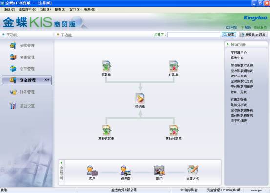 金蝶KIS商貿(mào)版幫您全面了解貨款流轉(zhuǎn)情況,迅速提供決策信息!是您管理的好幫手、生意的好參謀!