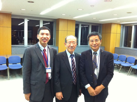 張良杰博士(左)與日本中央學(xué)院大學(xué)特任教授、一橋大學(xué)名譽教授平田光弘(中)
